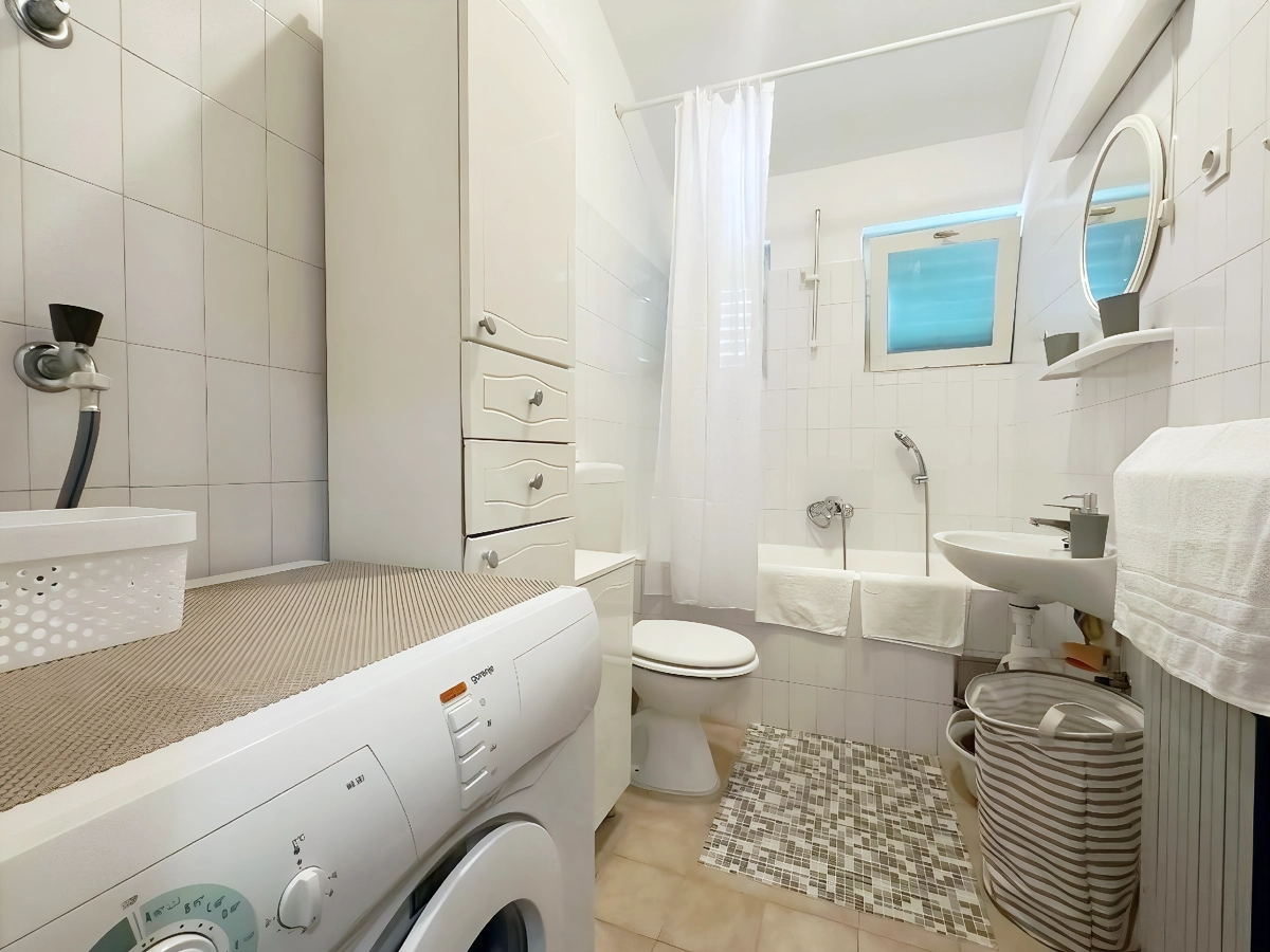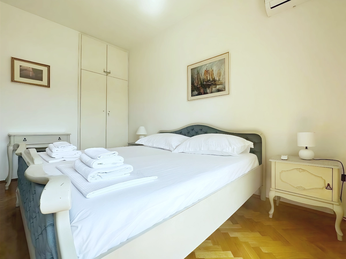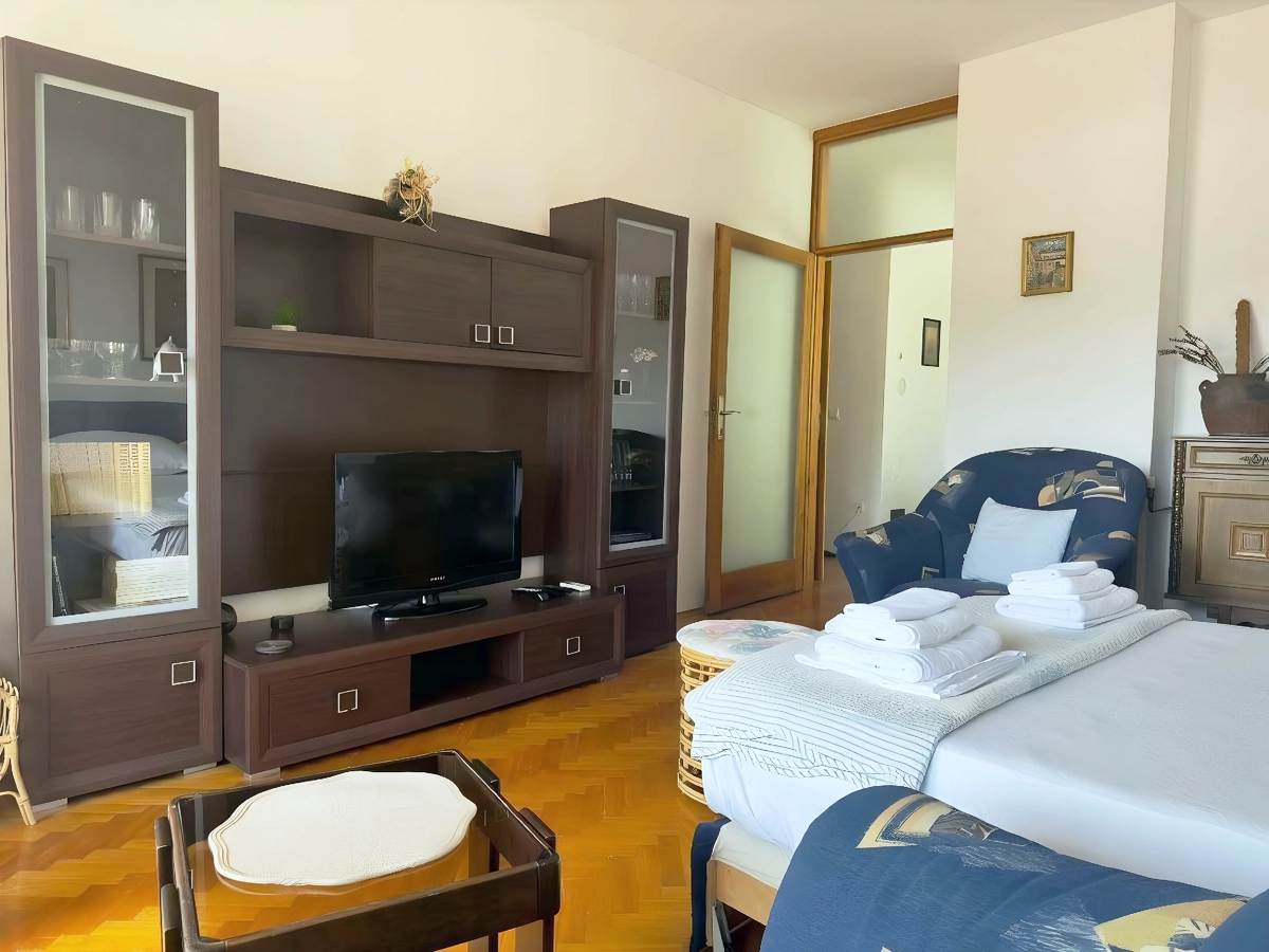 Makarska 14 is a spacious, air-conditioned apartment with a private terrace and balcony overlooking a peaceful garden. Located just 600 meters from Deep Port Beach and within walking distance of Makarska’s main attractions, it offers 2 comfortable bedrooms, a bright living room, a fully equipped kitchen, and a modern bathroom. Free Wi-Fi and a flat-screen TV are included for your convenience.