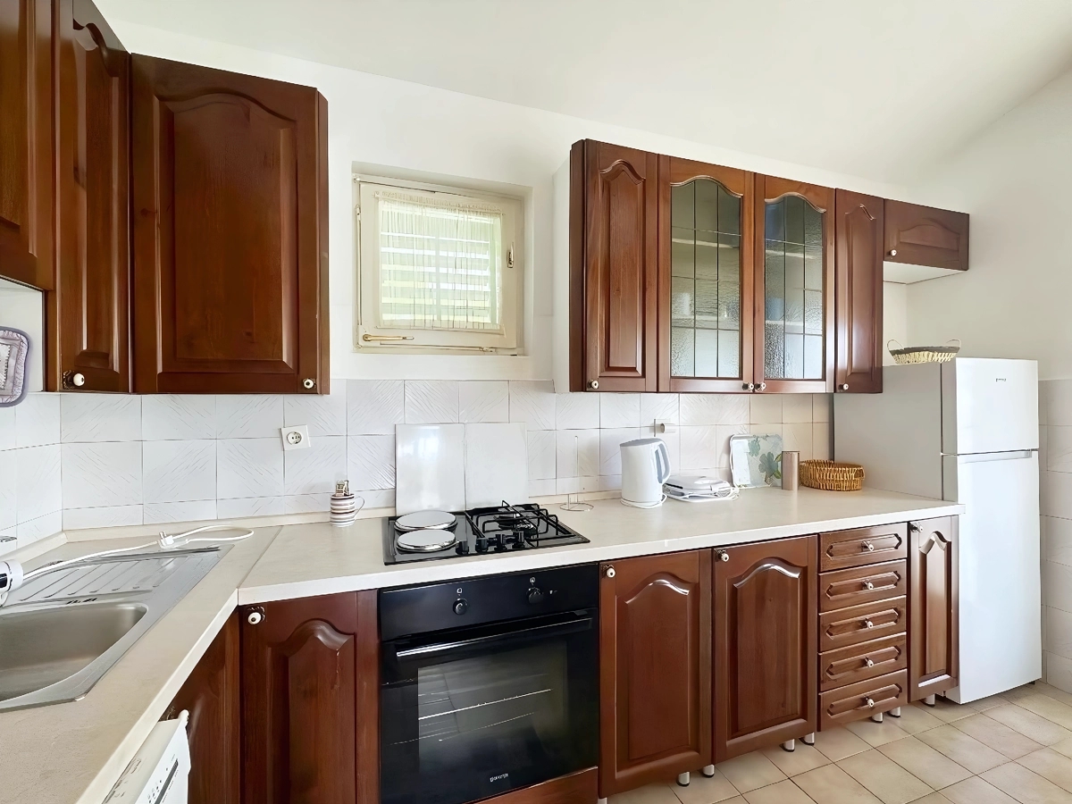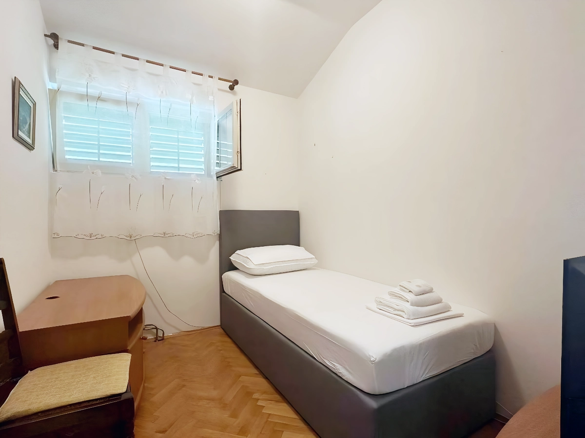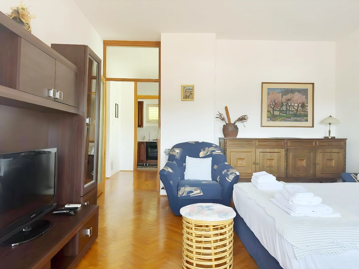 Makarska 14 is a spacious, air-conditioned apartment with a private terrace and balcony overlooking a peaceful garden. Located just 600 meters from Deep Port Beach and within walking distance of Makarska’s main attractions, it offers 2 comfortable bedrooms, a bright living room, a fully equipped kitchen, and a modern bathroom. Free Wi-Fi and a flat-screen TV are included for your convenience.