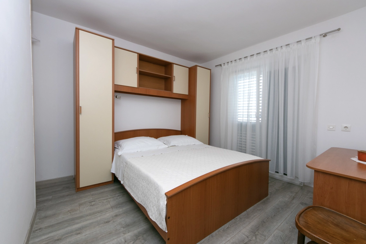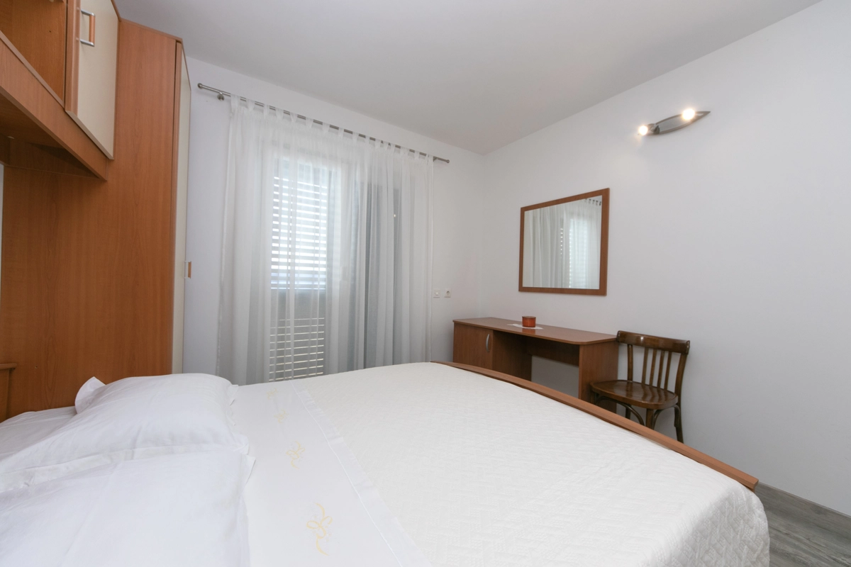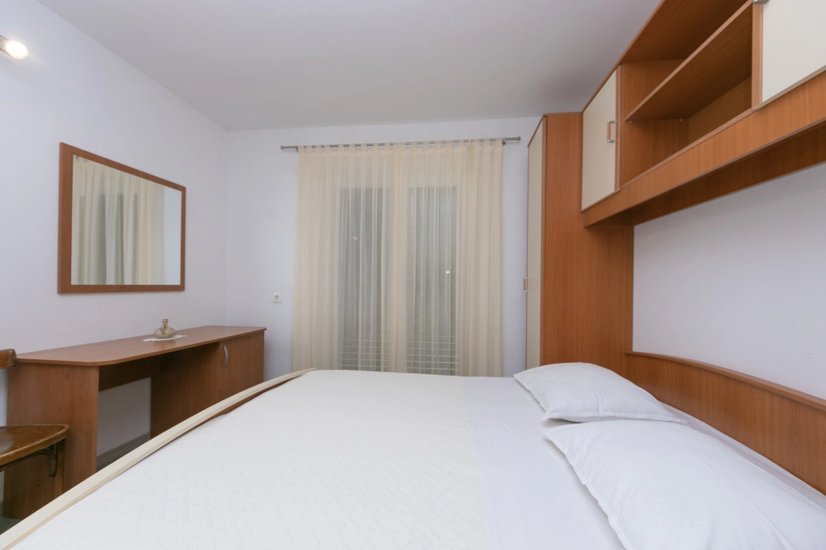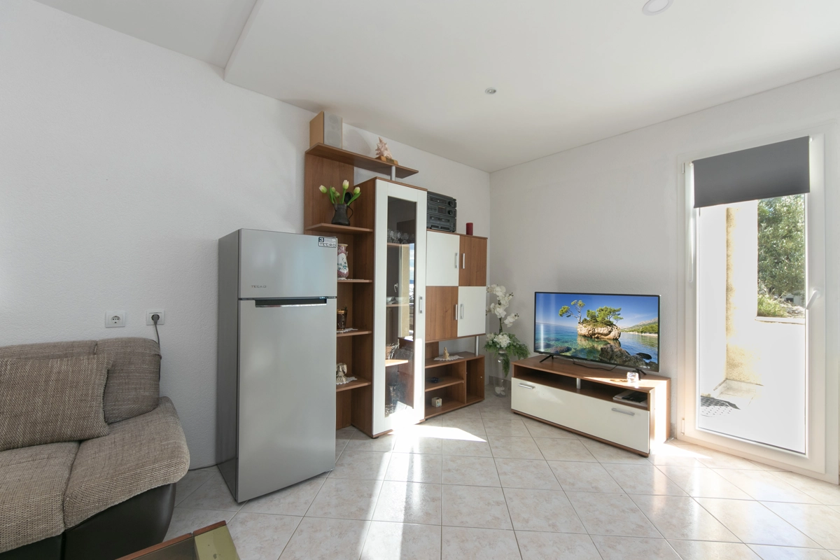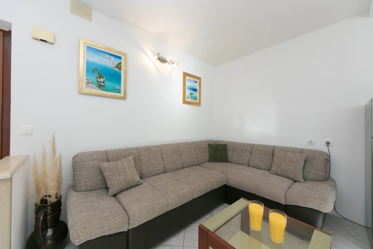 This charming apartment is located in a peaceful area of Brela, offering a beautiful view of the sea. The apartment features two bedrooms, a spacious living room, a fully equipped kitchen, free internet, air conditioning, two terraces, and a barbecue.
