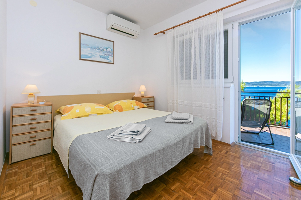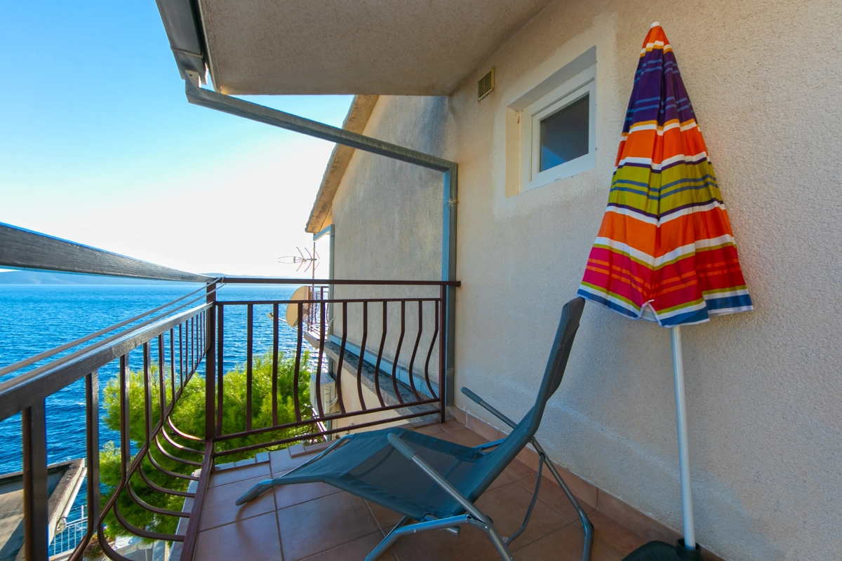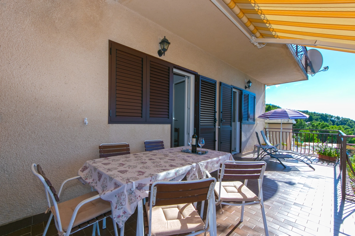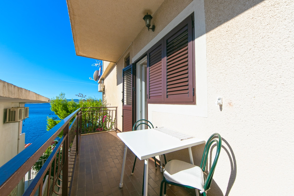 The property offers seaside accommodation with a beautiful view. It features one studio apartment for two people and one apartment for six people with three bedrooms. Each unit is equipped with air conditioning, free Wi-Fi, and satellite TV. The apartments have a private terrace with a view of the coastline.
