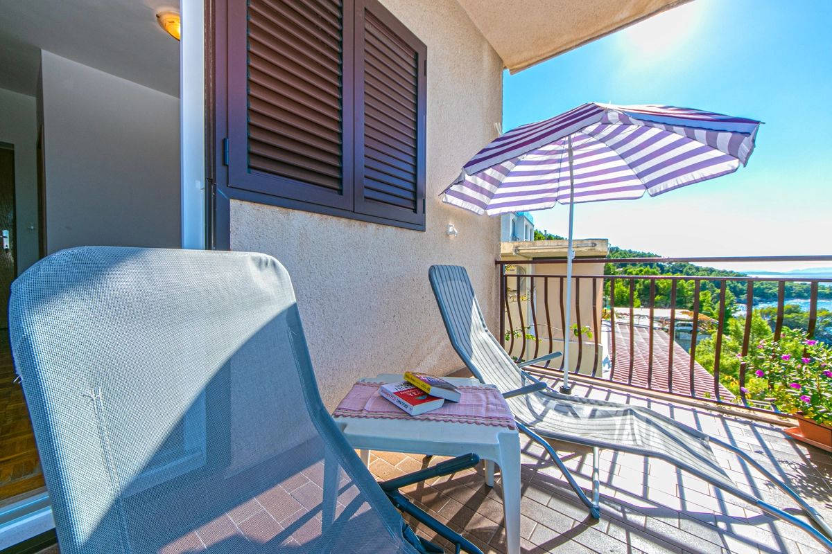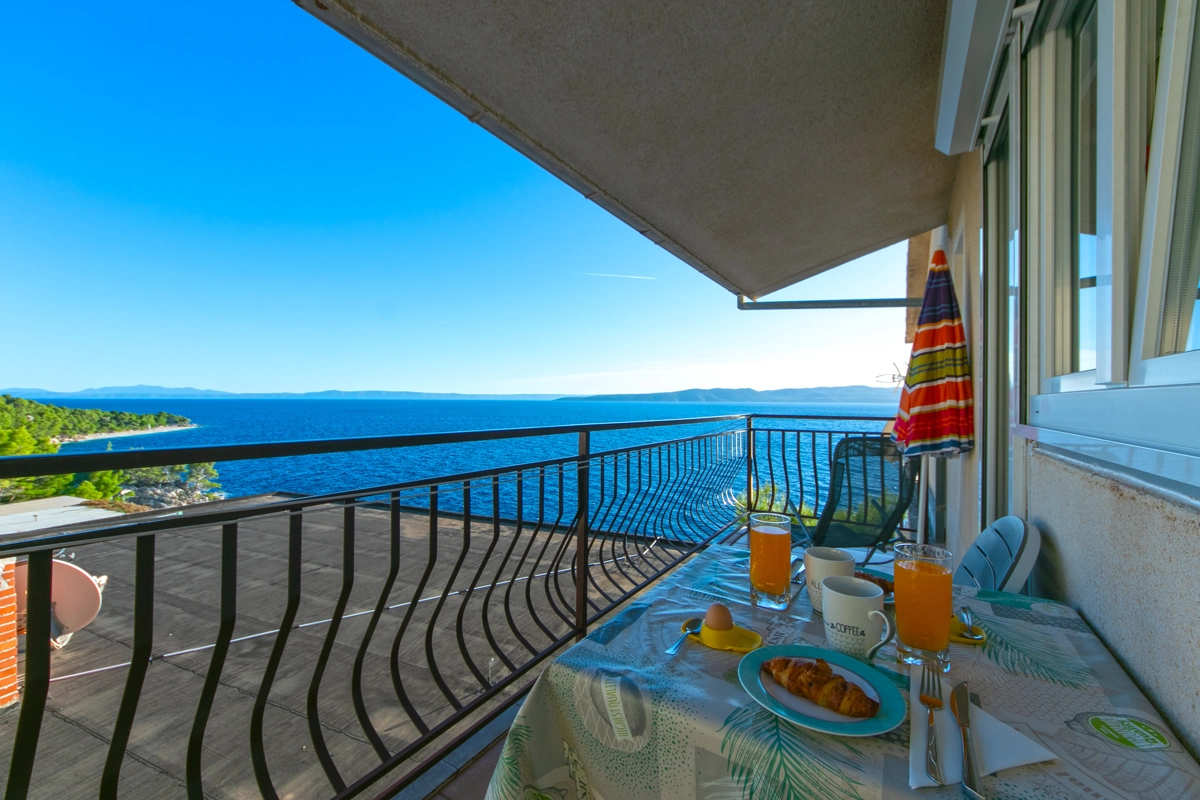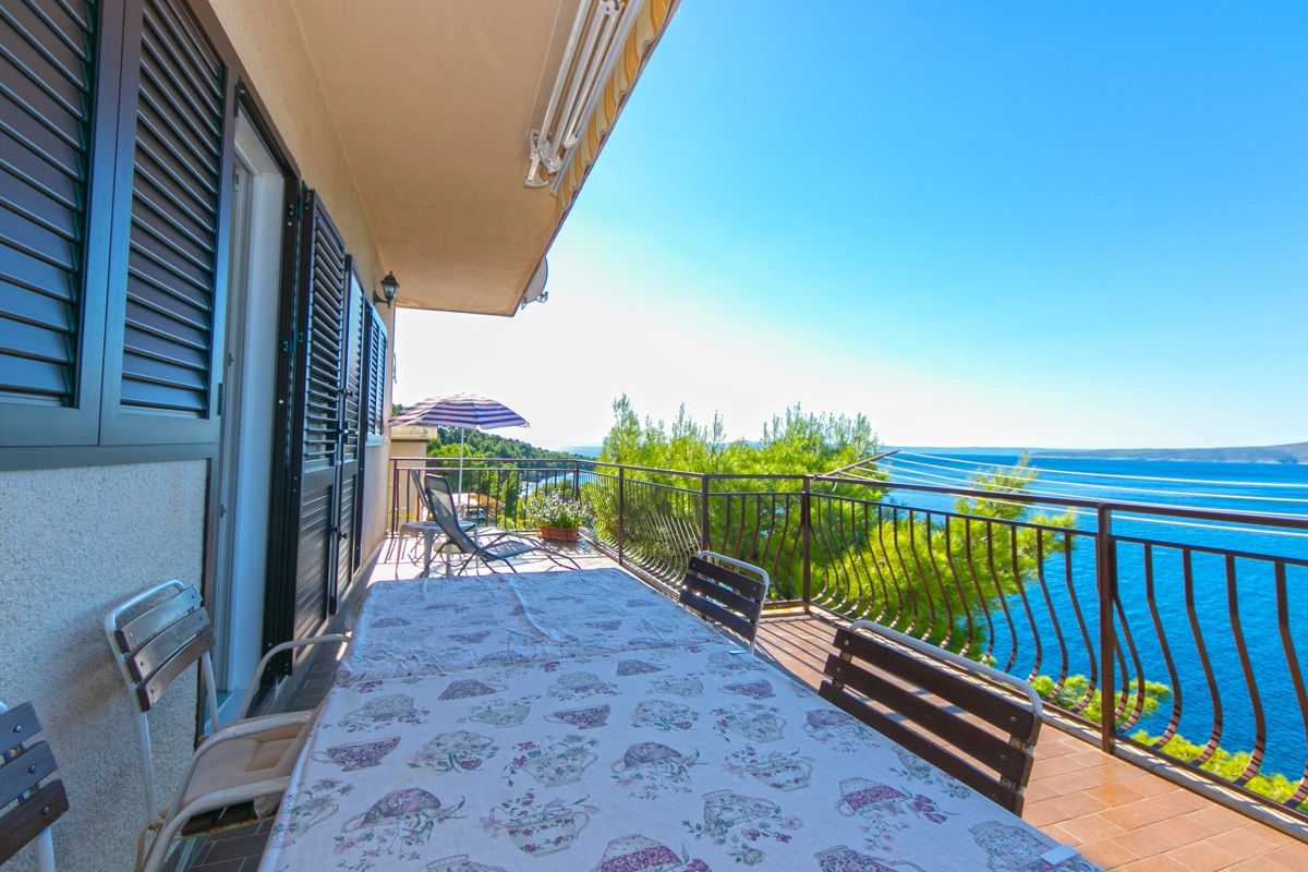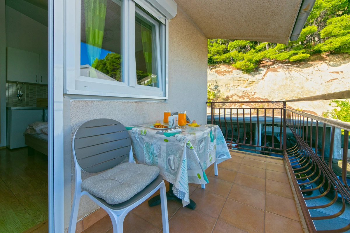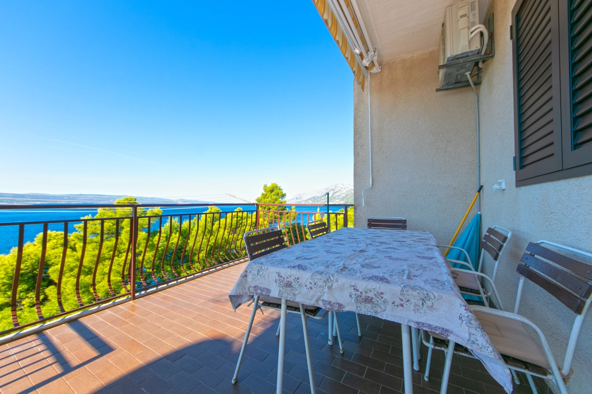 The property offers seaside accommodation with a beautiful view. It features one studio apartment for two people and one apartment for six people with three bedrooms. Each unit is equipped with air conditioning, free Wi-Fi, and satellite TV. The apartments have a private terrace with a view of the coastline.