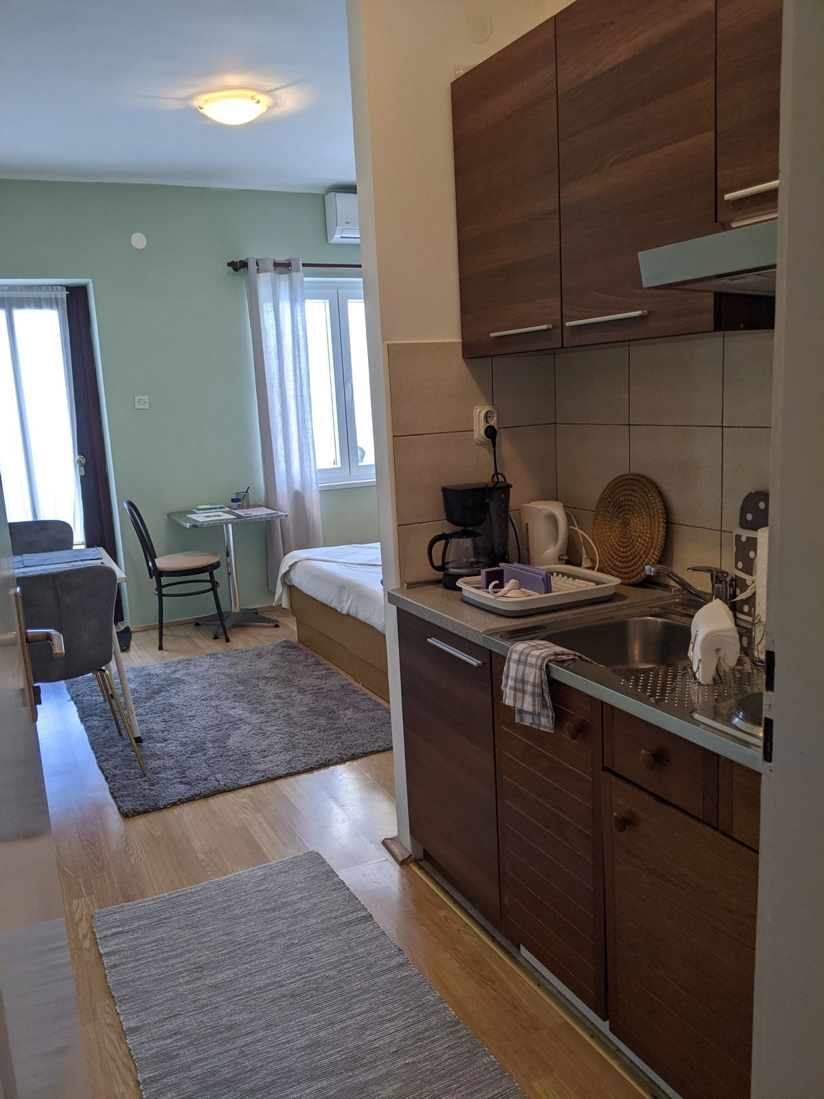 The property is located in an excellent spot, right on the beach in Drašnice. It consists of two apartments and two studio apartments. Each apartment has its own terrace, offering the feeling that you could just step into the sea.