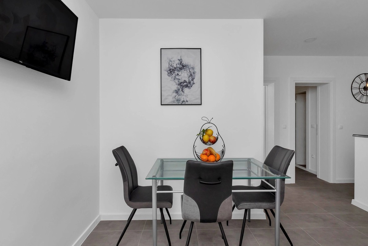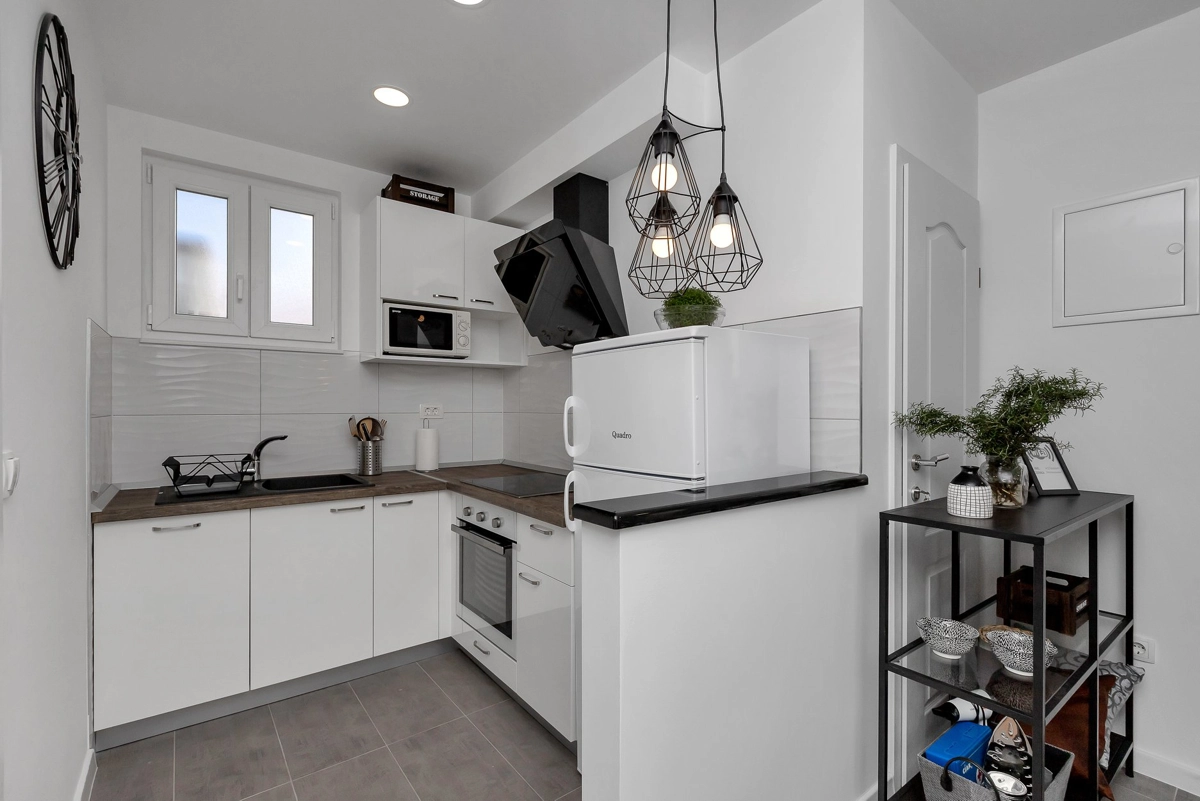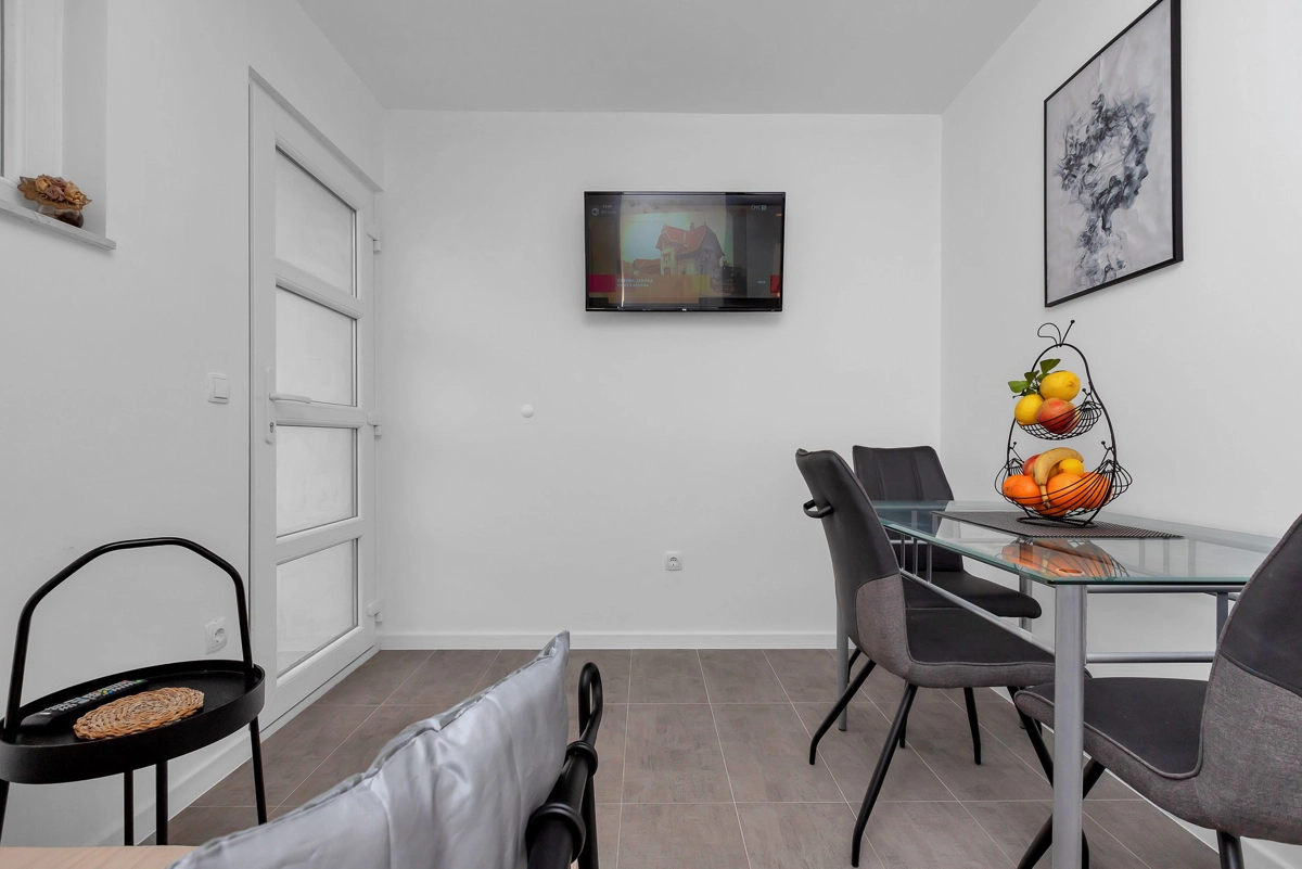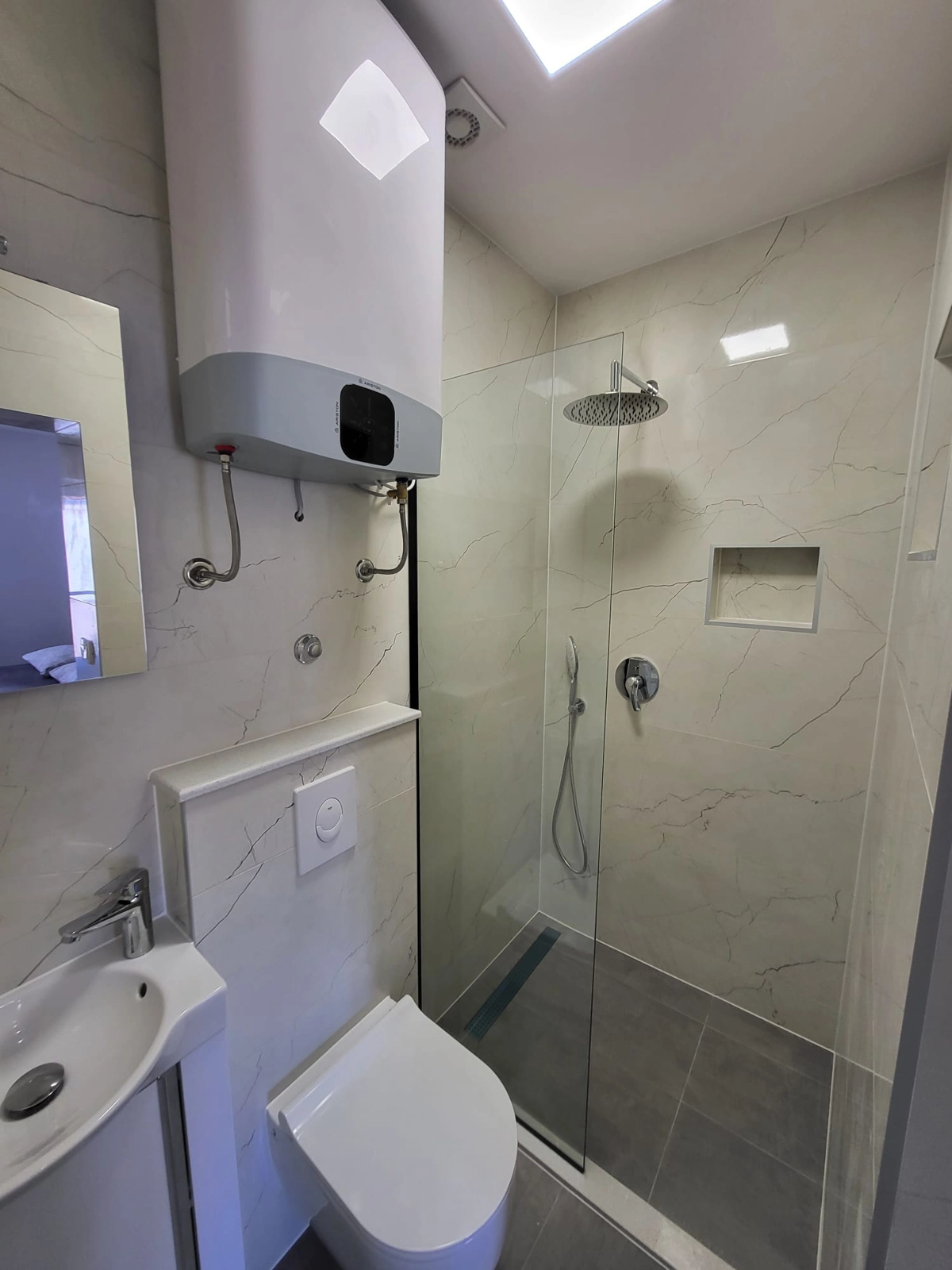 The property is located just two minutes' walk from the main beach in Makarska. Inside the property, there are three apartments: one apartment for three people and two apartments for four people. The two upstairs apartments have private terraces with a view of the coastline, while the ground-floor apartment features a large terrace with a barbecue. Parking is available on-site.